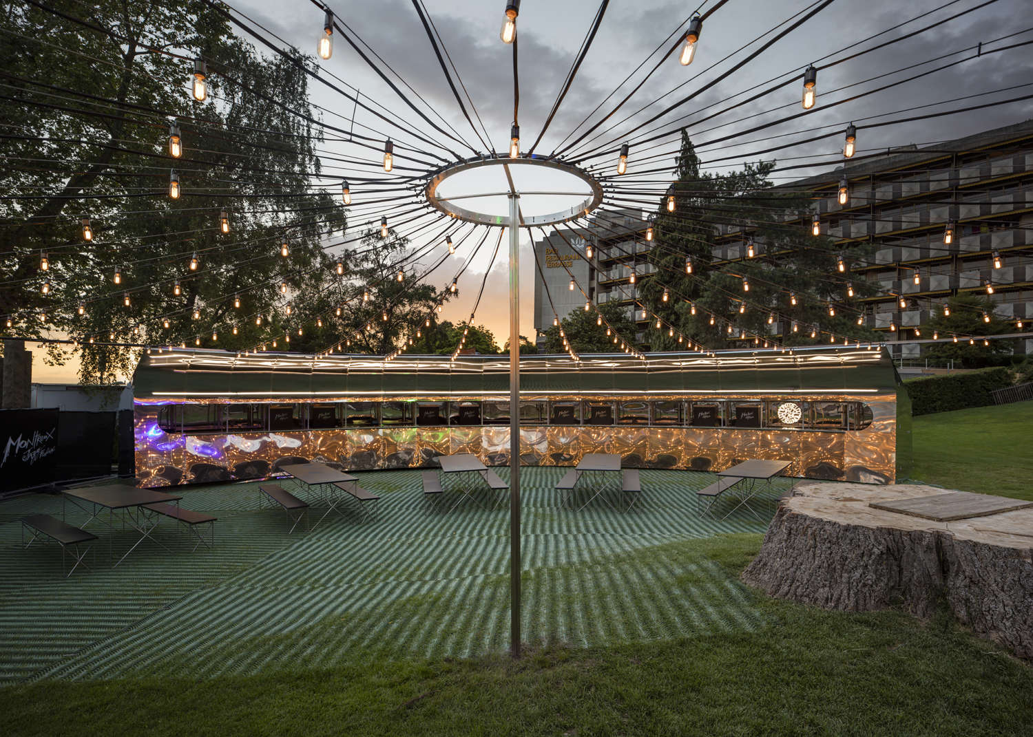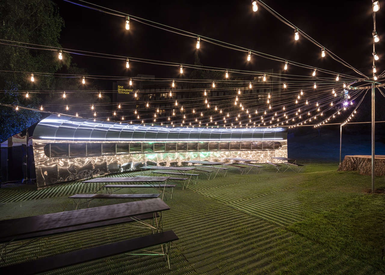 Not your style? Then check out gorgeous outdoor diner in Montreux, Switzerland. So, now you can eat under the stars in the Parc Vernex! This gorgeous project is all about metal and light. The metal reflections merge with the natural ambiance to create a truly unique experience. In short, it’s a starry night all day long.