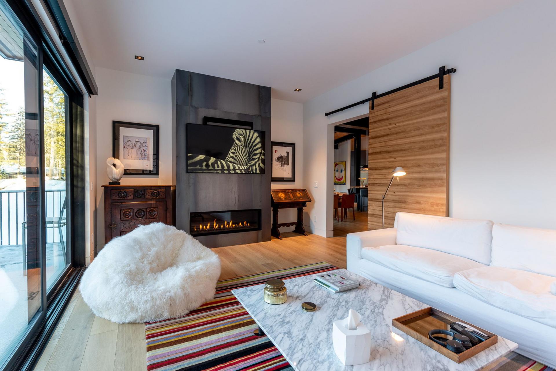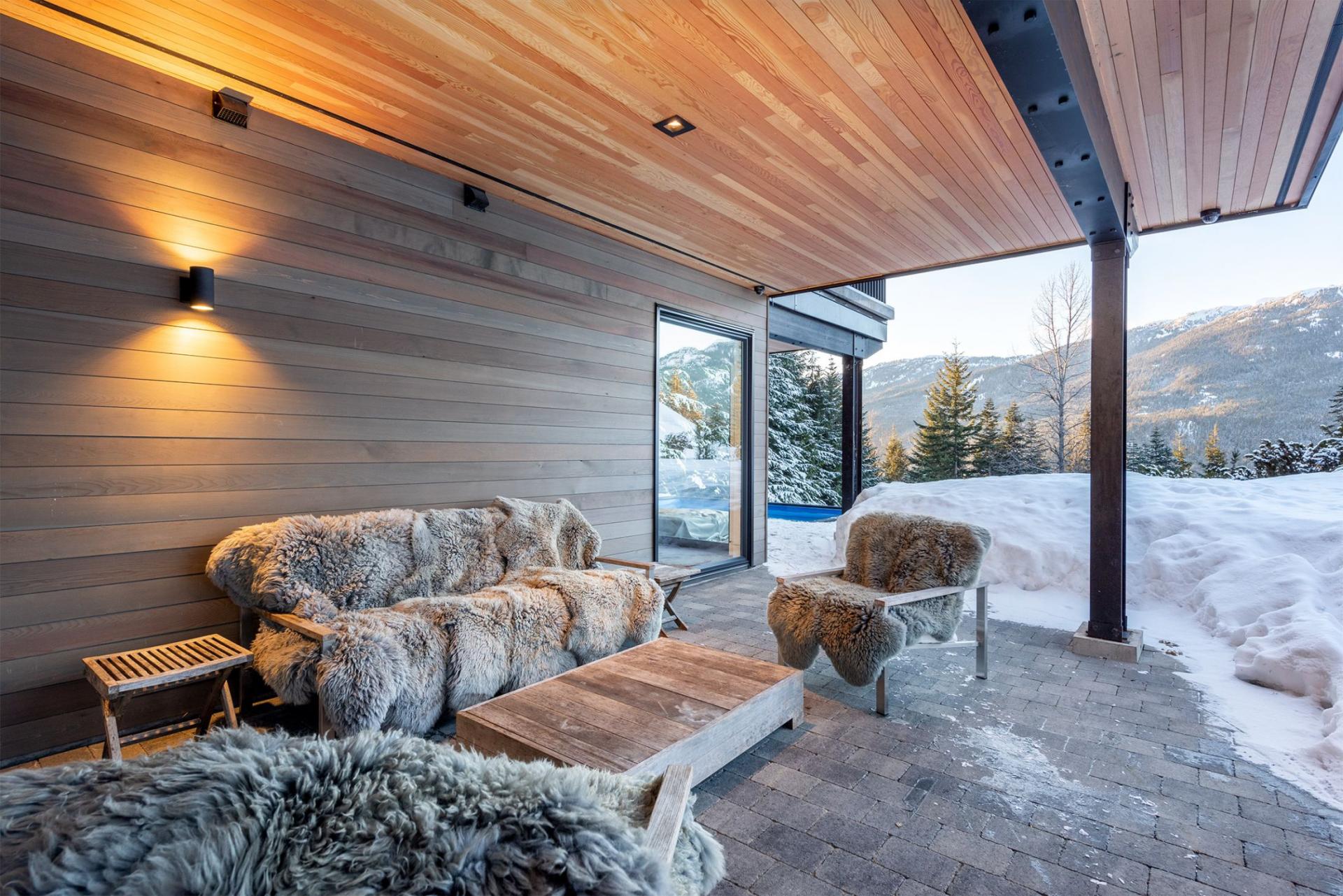 Of course, the outdoors is a big part of a chalet design. This project incorporates it not only by creating an outdoor area you can stay warm in, but by allowing the large windows to bring the natural beauty into the interior decor. Truly stunning, don’t you think? And just check out the chic bathroom and modish second living room.