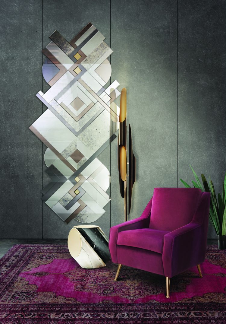 An Entryway design with bold colours and decor pieces. From the Symphony Wall Lamps by Delightfull to the Heritage Sideboard by Boca do Lobo, this entryway room was design to make a bold statement.