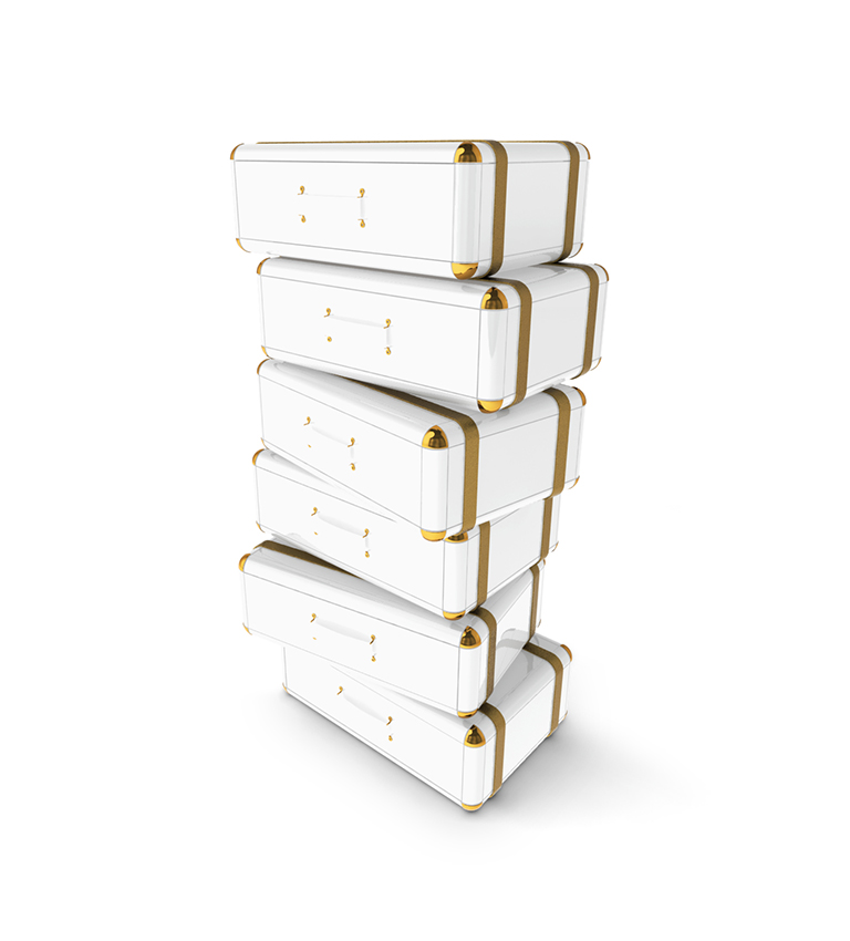 To add a little bit more storage to the kids bedroom design the brand introduced the new Fantasy Air Drawers, which were inspired by the Disney movie “UP”. There’s a 3 and 6-drawer version of these items, each one made in wood metal and synthetic leather. The standard finish is lacquered in glossy grey, nickel finishing and white leather strips.