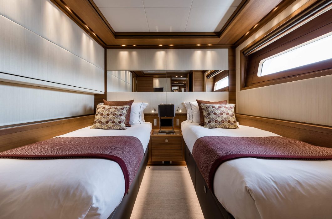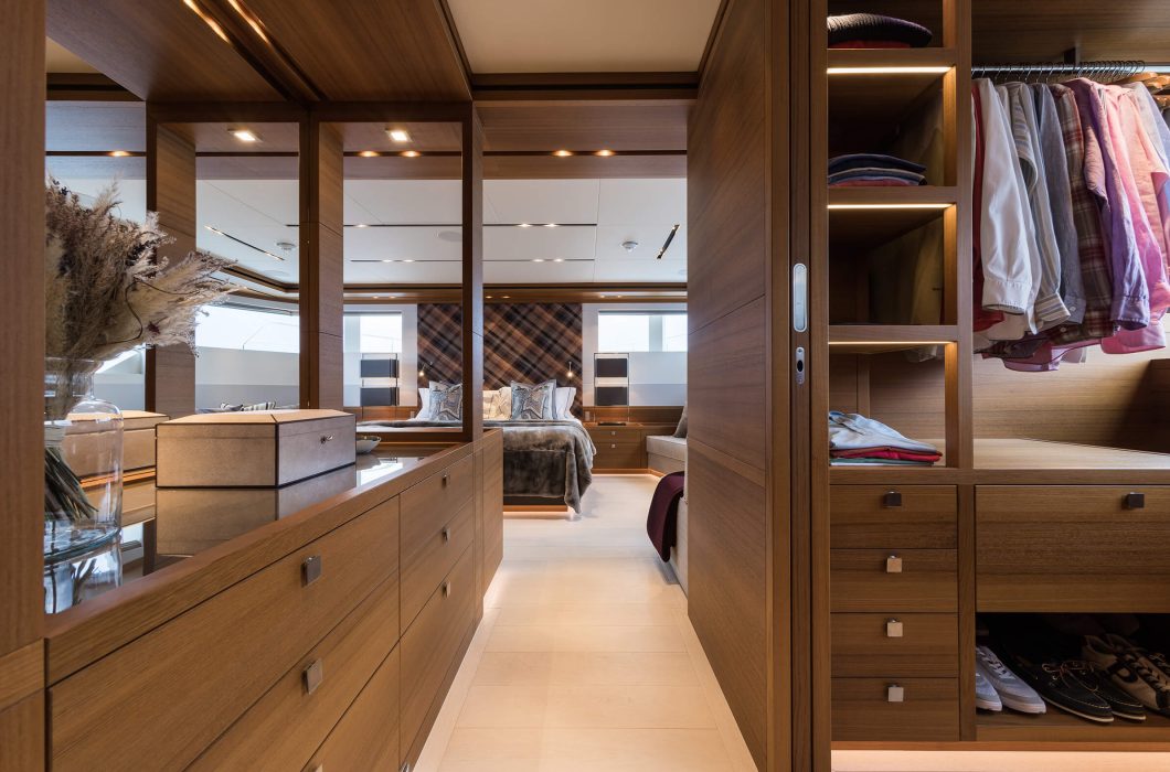 Besides, it’s quite a practical design. As you can see, the bedrooms and closets are amazingly organized. It’s all about luxury, yes, but also about comfort and practicality. The high seas are no place for clutter, which can cause accidents in bad weather.