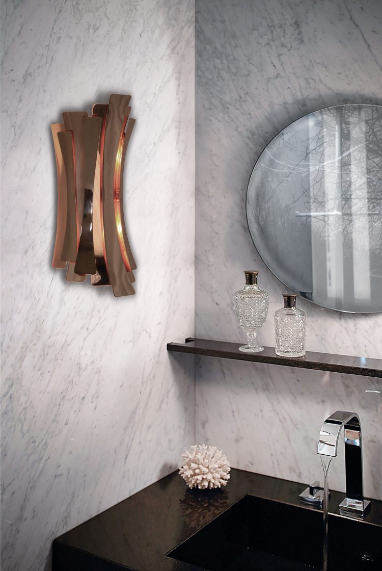 On colors choices, luxurious bathrooms lighting designs tend to be in brass metallic shades, mostly gold but sometimes silver and copper brass. More than that, they tend to be combined with several other materials such as crystal glass and, having distinct finishes.