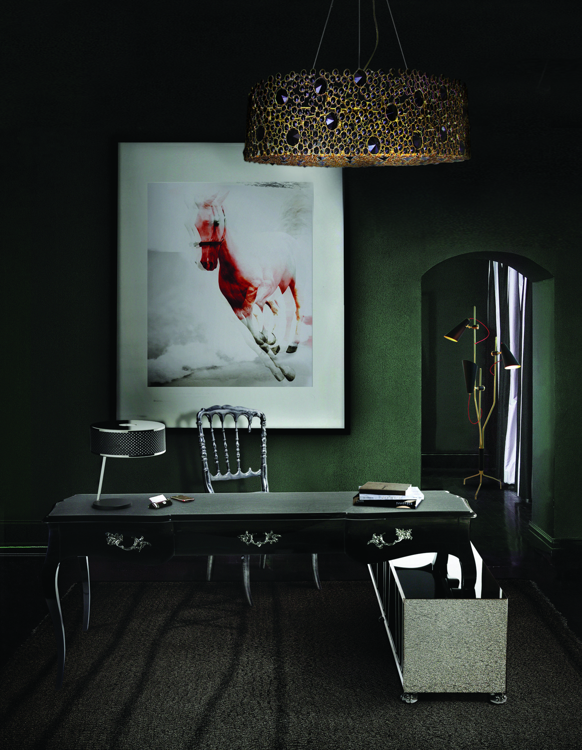 Of course, you can have all types of Lighting Designs from chandeliers and suspensions to wall or floor or table lamps. Everything depending on the needs of the room, given the style of the interior design chosen for that office room