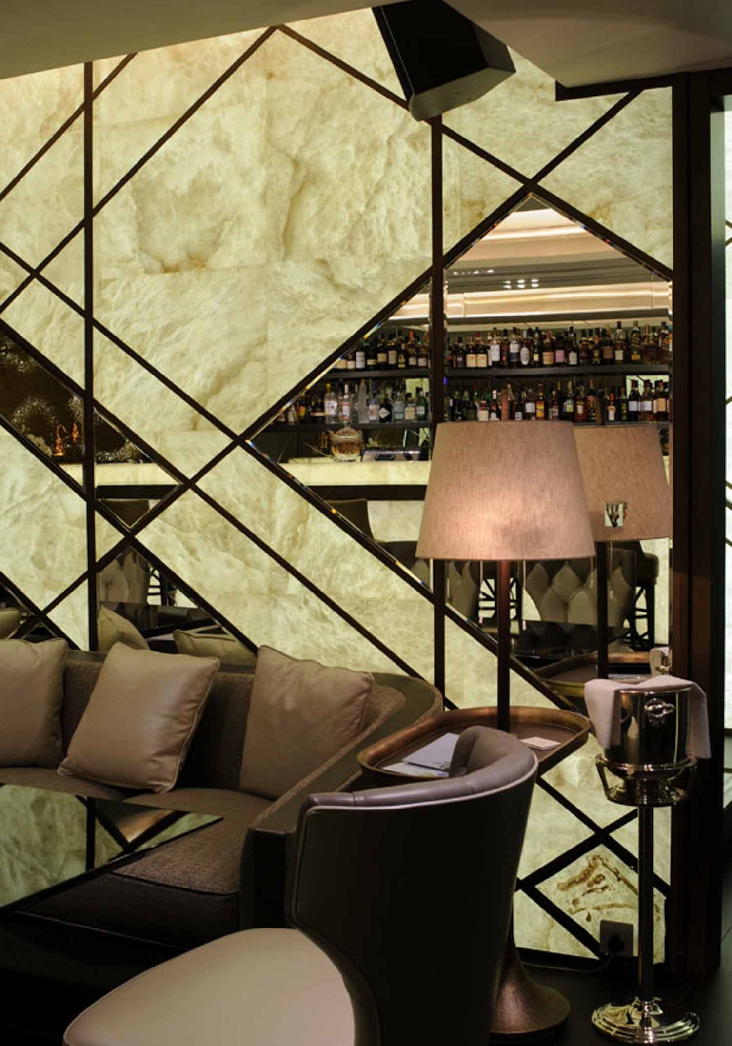 The rest of the restaurant evoked art deco elements for an even more interesting interior. There’s something almost jazzy about this design, with the focus on diagonal lines and mid-century elements. It’s true luxury, available only to those who can afford it.