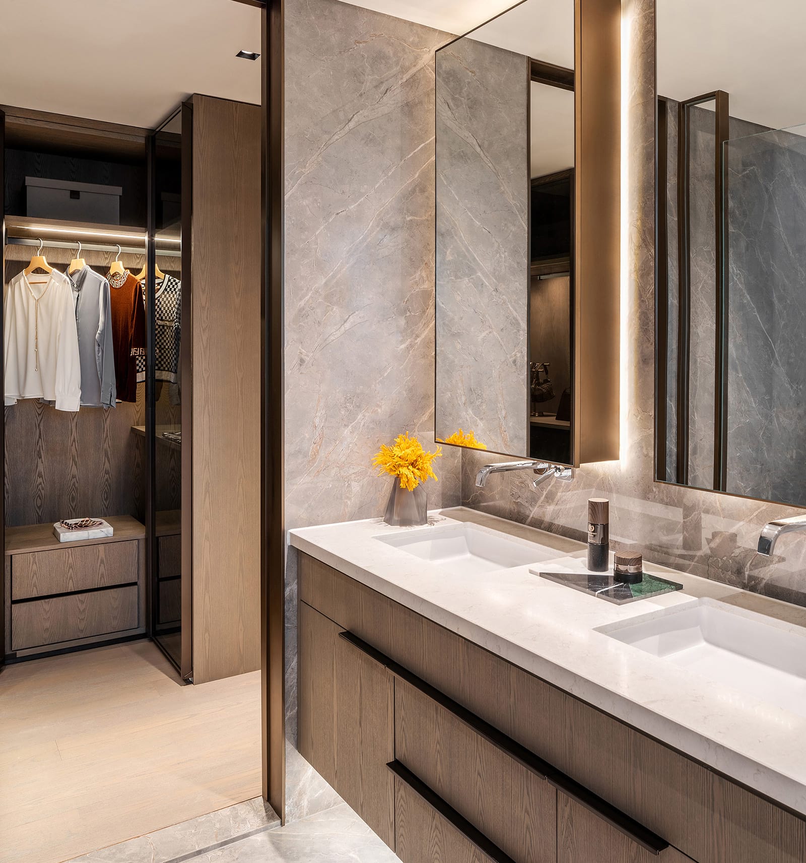 The Runxi Residence project covers four 60-story towers in a riverside development. It is a contemporary, modern project to its core. However, notice how it capitalizes on the use of stone and wood to create the perfect, almost minimalist luxury interior. The point of this project is to exude refinement, but also modernity and good taste. There are no hints of excess or clutter.