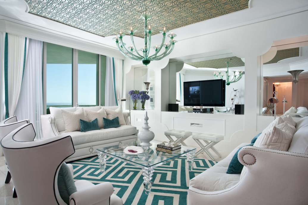 Amazing living room inspirations by DKor Interiors on beautiful Miami home designs. The predominance of white, in different materials is clear and so is the way the designer arranges for the white to fit perfectly, with other bright sober tones or with vibrant exotic colors and patterns.