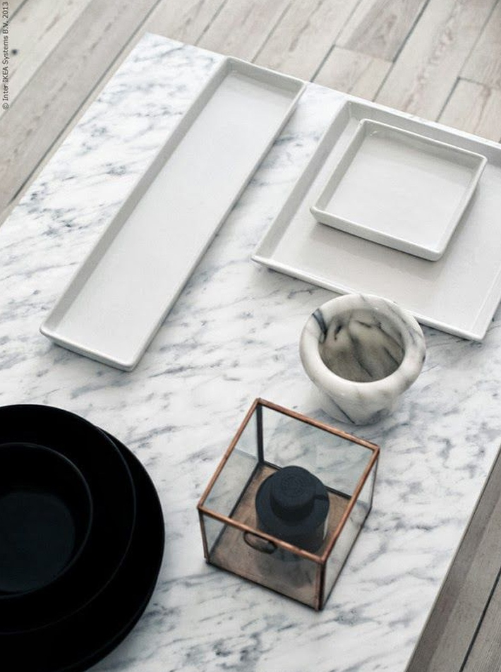 Usually, marble used to be used on specific pieces of interior design such as kitchen settings (kitchen counters), furniture (tables, mostly) and also, in an ambience (floors).