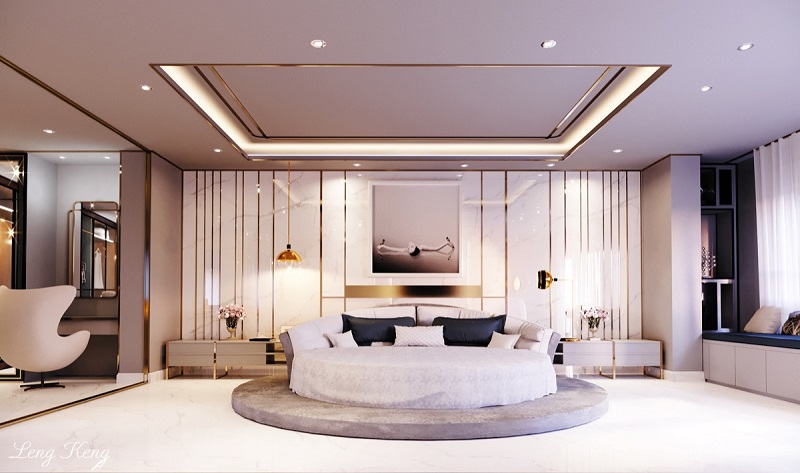 If the marble is in white tones, the room can be design and decorated around shades of black, grey, metallics (silver, gold, copper, even pink copper), red. Other color may be combined with white marble but in certain amounts and with selected pieces.