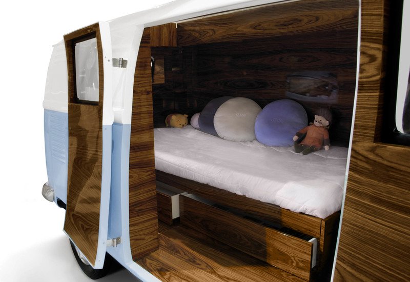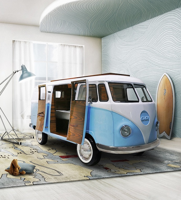 The Bun Van Bed by Circu is a beautifully designed piece. The design itself is worthy of Unexpectedly Expected trend, since it’s not a common design for any bed. However, in bedroom inspirations for kids, many brands have started to be more creative and fantastic with the purpose of creating a kid’s own world and favourite things. The bed design is very colourful, mixing the usual colors related to the van inspiration. The inside of the van is made for comfort, privacy and a bit of storade below the bed, basically creating a kid’s